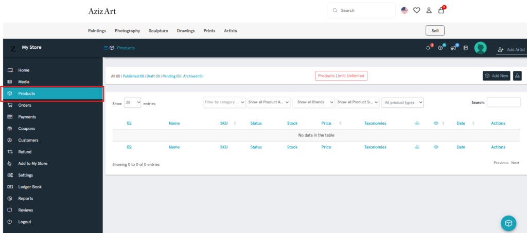 On the vendor dashboard page, click Products.