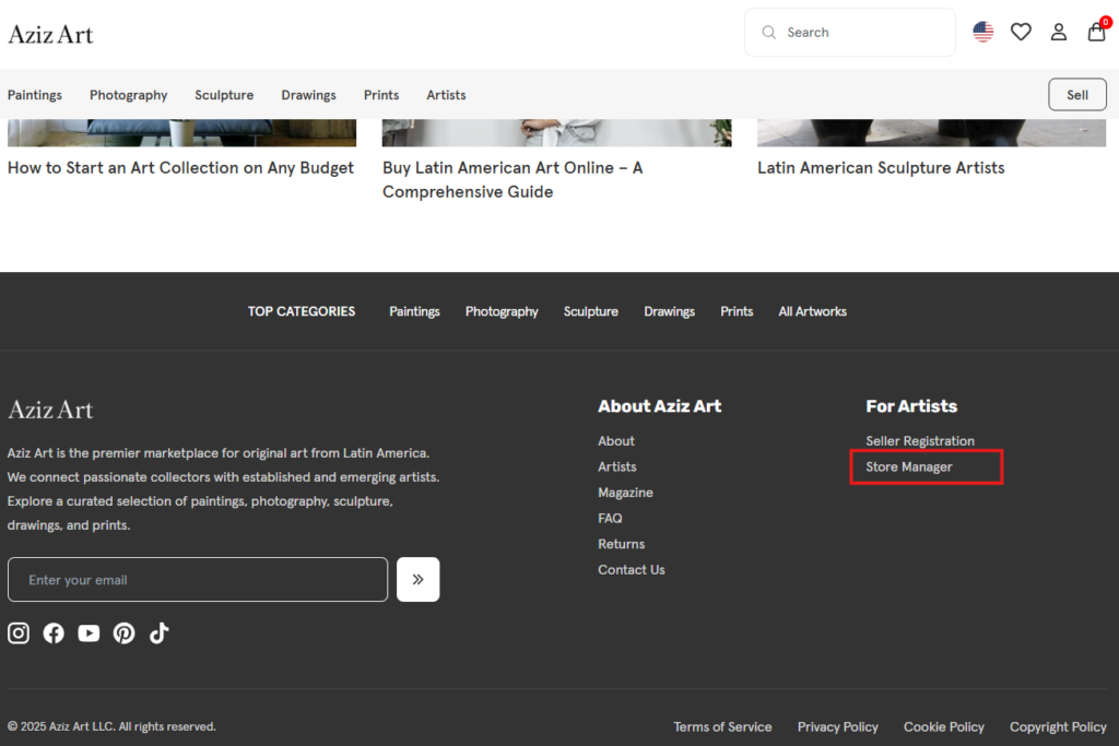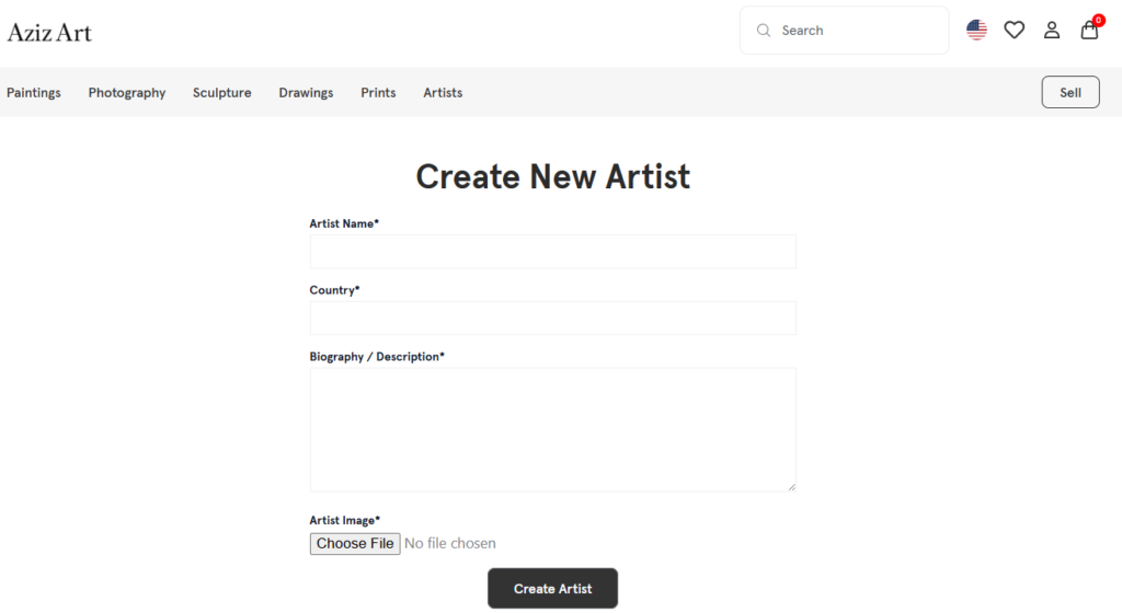On the Create New Artist page, fill in the artist’s information for the artwork you are selling.
